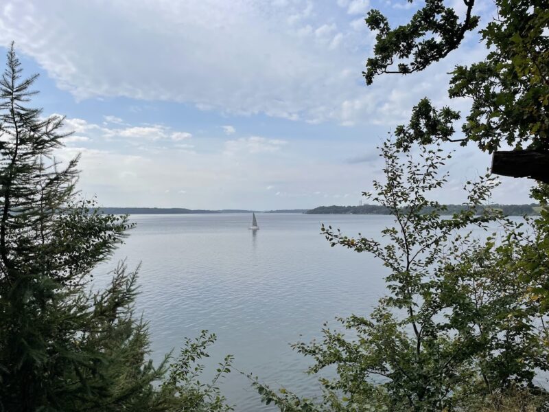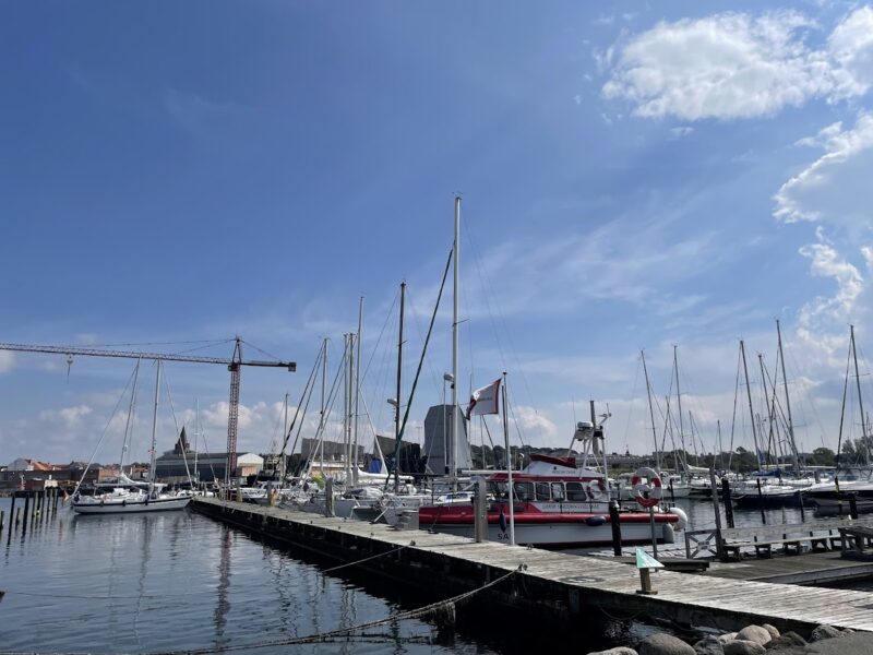 Vejret var igen super og vi gik med Nanna ind til havnen, hvor dagens podwalk startede. Vi havde fået blod på tanden med den form for kulturelt input. “Sundets stilhed” hed denne tur, der var lavet af det lokale teater, Baggårdsteatret og som havde hyret selveste Lars Mikkelsen til at være fortæller. Hans stemme er jo behagelig at høre på, men måske spillede de en anelse for meget på hans kendthed: “nu går vi her sammen, os to” osv.