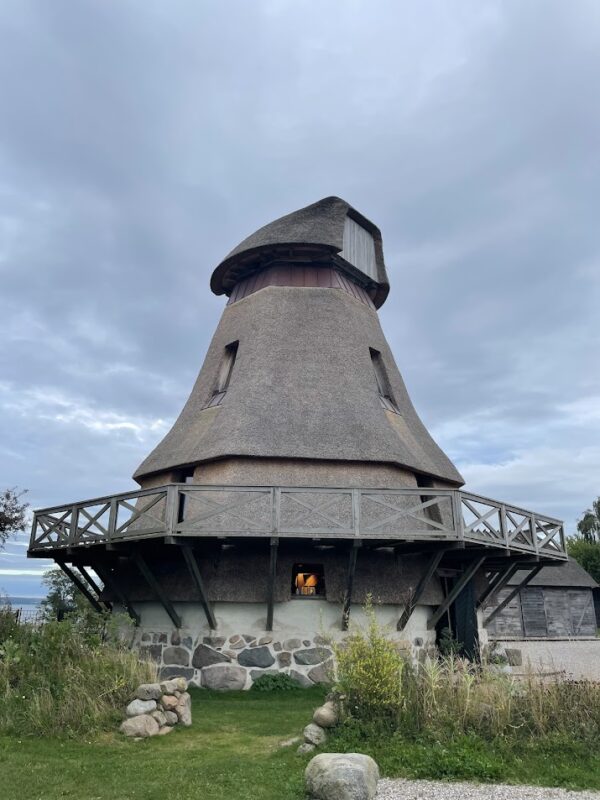 Videre til Fyret, hvor man kunne parkere, men ikke så oplagt at være der en hel eftermiddag. Vi havde nemlig fået lov at sove ved Helnæs Mølle, hvor vi skulle spise.