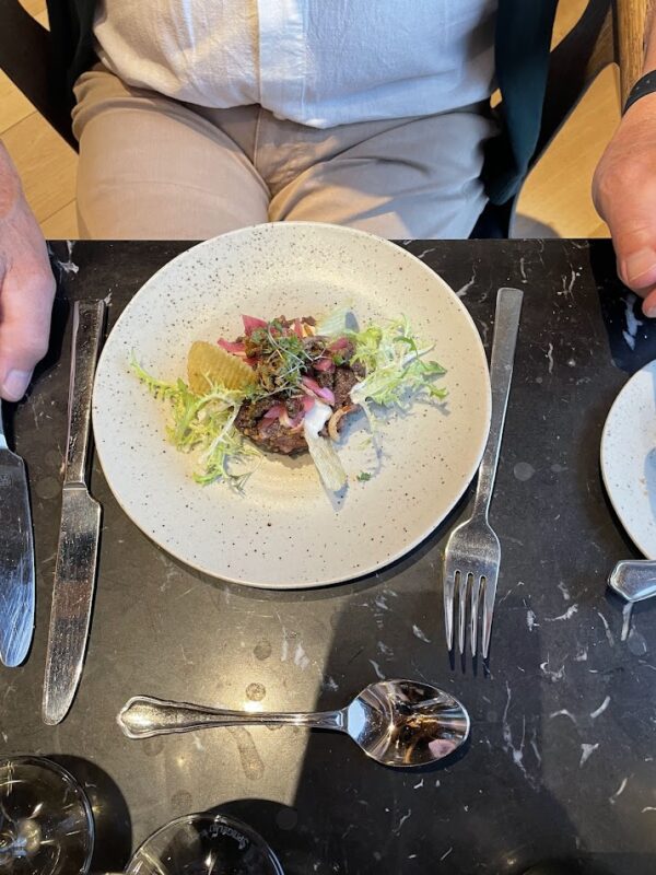 To fine restaurantbesøg på få dage? Er de nu ikke ved at være lidt rigeligt ekstravagante, de seniorer?! Jo, måske, men vi havde meget at fejre!…Dels er det præcist 10 år siden, vi overgik til seniortilværelsen og hvilke herlige 10 år, vi har haft! Dels havde jeg de sidste 5 måneder bøvlet med mine tænder og kæbe efter en lidt kompliceret tandudtrækning. Men sørme om ikke en “mirakelsmed”, der lavede øreakupunktur, kaldet Auriculo, fik kæben til at slappe mere af, og så var det pludseligt rart at spise igen. Det skulle også fejres – og det gjorde vi så grundigt på denne tur.