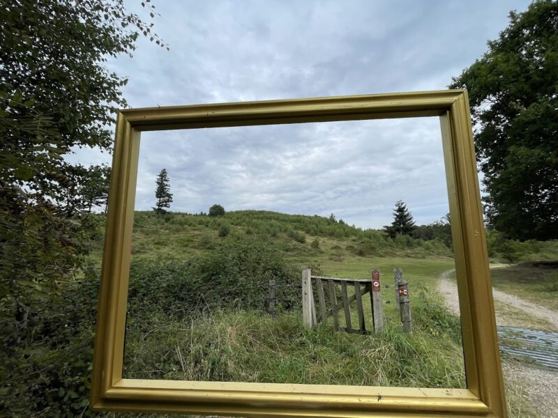 Vi ville gerne have set de fynske malere på Fåborg museum, men desværre var det lige præcist mandag og dermed lukkedag. Til gengæld var der i bakkerne stillet nogle store rammer op, så man kiggede på landskabet som om det var et maleri.