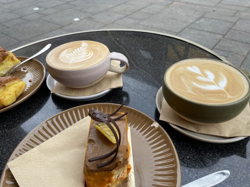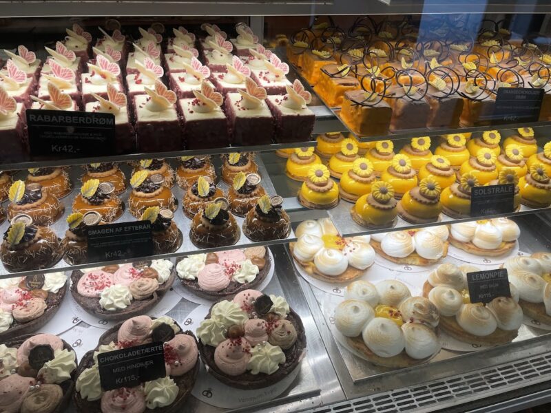 Stillede cyklerne inden for Vesterport, hvor der lå et særdeles velbesøgt bageri / konditori, så vi sprang til, da der lige var et enkelt ledigt bord udenfor.
