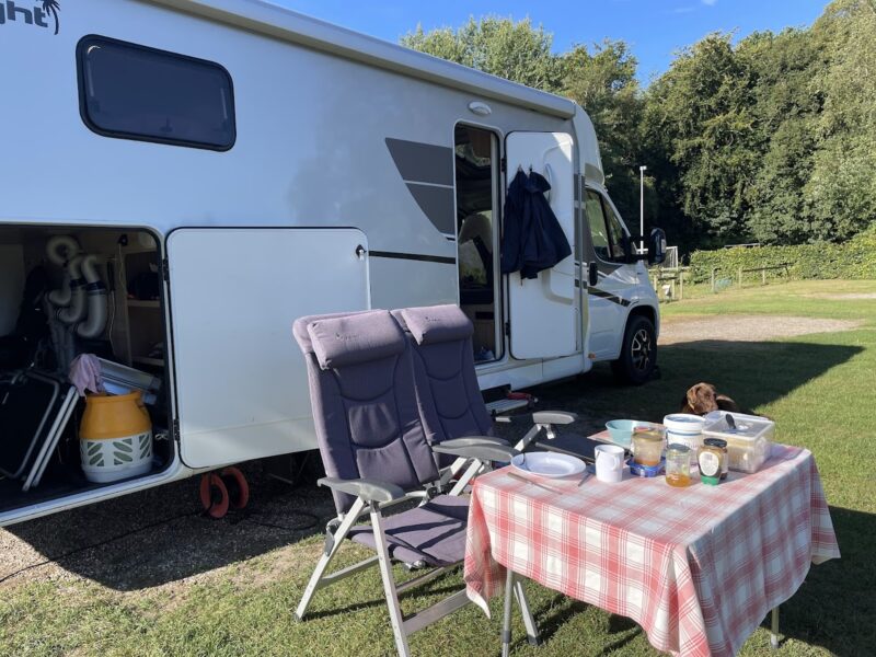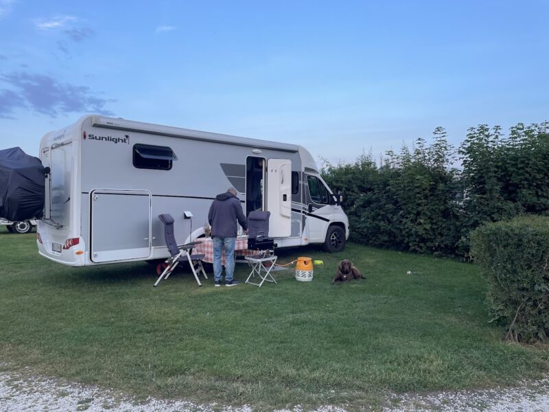 Retur til camperen besluttede vi at køre til den nærliggende campingplads, Camping Svendborg sund. Et super fint sted, hvor vi boede på en af pladserne med havudsigt. Nok den mest tiltalende plads, vi har boet på i denne omgang.