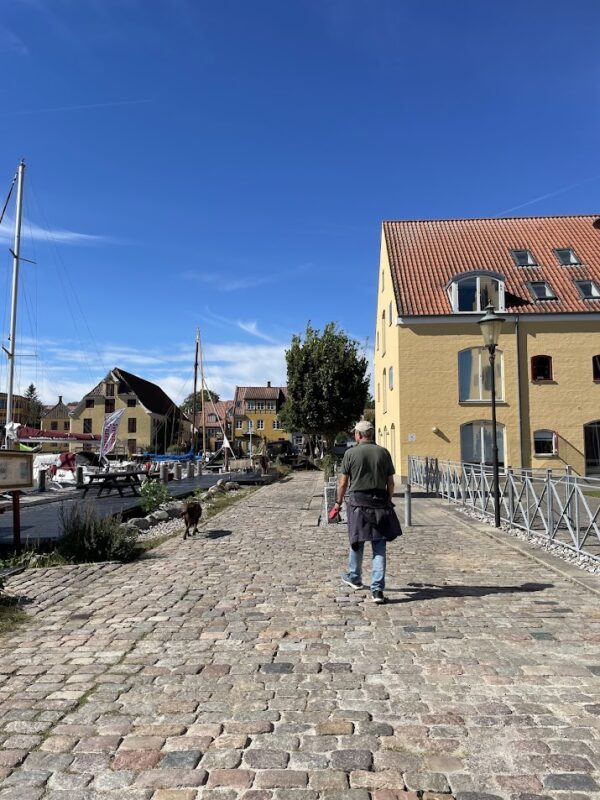 Her gik vi en mindre tur, bl.a. ad Grønnegade med de mange gamle bindingsværkshuse og ad en sti retur til havnen. Nu dejligt solskinsvejr og lunt.