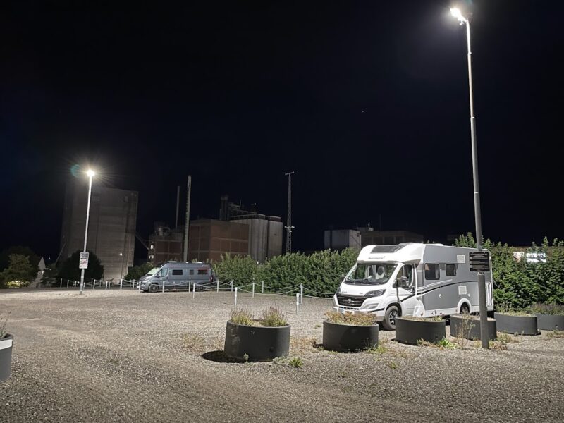 Tæt på havnen men ikke udsigt og lidt trøstesløse omgivelser. Vi var de eneste, dog kom der senere en enkelt camper mere. Tykt grus og metalkæder til opdeling i båse. 200 kr inkl gebyr til Easypark.