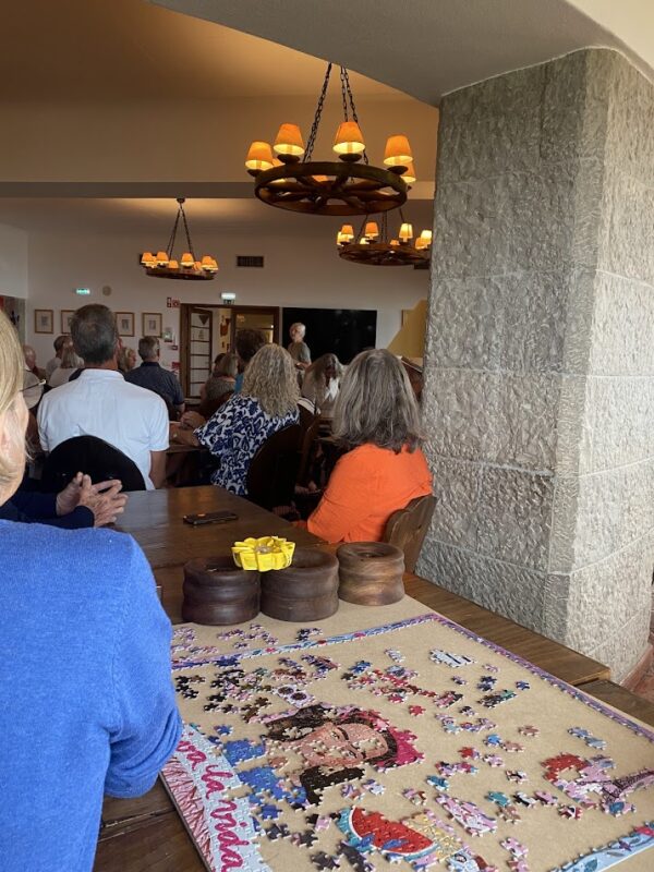 Morgenmøde i god ro og orden. Der var fuldt hus i denne uge, da perioden er meget attraktiv på Coracao.