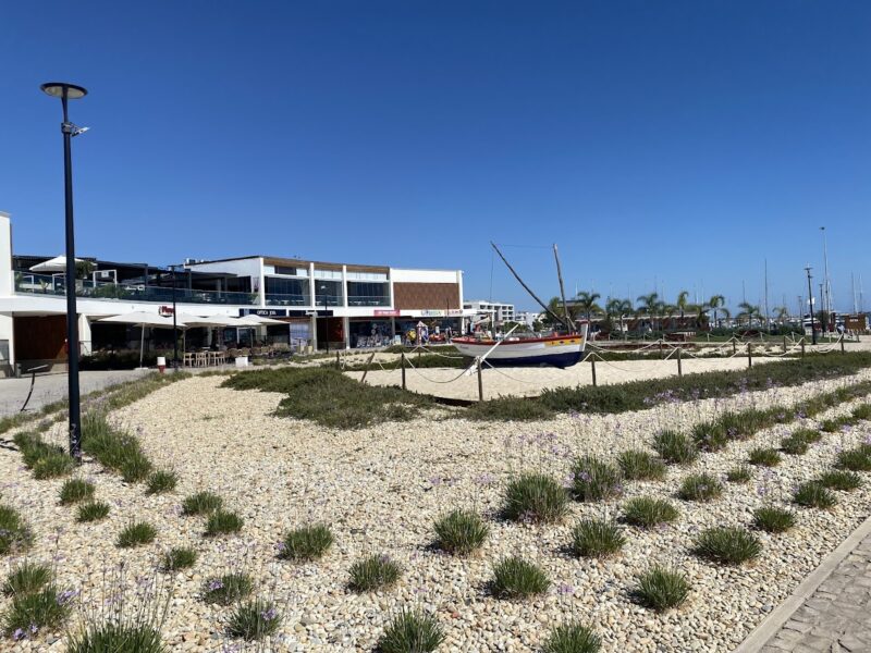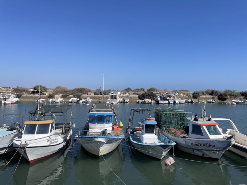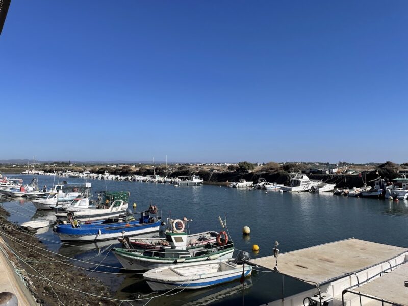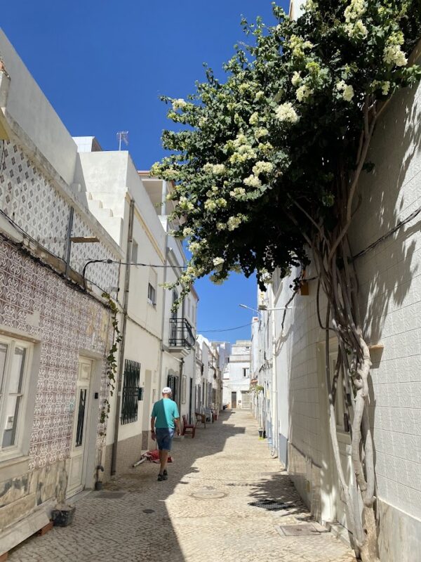Ved sidste besøg i Portugal havde vi spist på en fiskerestaurant i Fuseta, Dos Mestres. Dén ville vi gerne vise vores gæst. Det var lavvande, da vi ankom, så vi udsatte badeturen og gik i stedet rundt i den lille by.