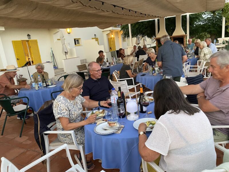 Den lille nyrenoverede cafe var lukket mandag, men det vidste vi godt, så vi kørte via Alportel på vejen hjem. Forsamlingshuset var lukket, men Vitoria havde åbent, så vi satte os i skyggen. 4 danskere satte sig tæt på, de var selvfølgelig fra Coracao og vi kom hurtigt i snak. og ikke mindst det ene hold var vi en del sammen med på denne tur.