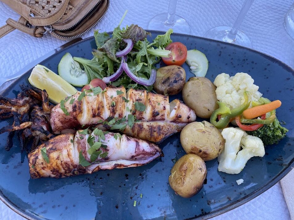Det blev i stedet til frokost nede ved vandet. Lidt langsom betjenings- og serveringstid, men det var fint at sidde der og ikke overcrowded. Fik grillede squids. De var lidt hårde i det og nok ikke så friske som i Futesa, men bestemt ok.