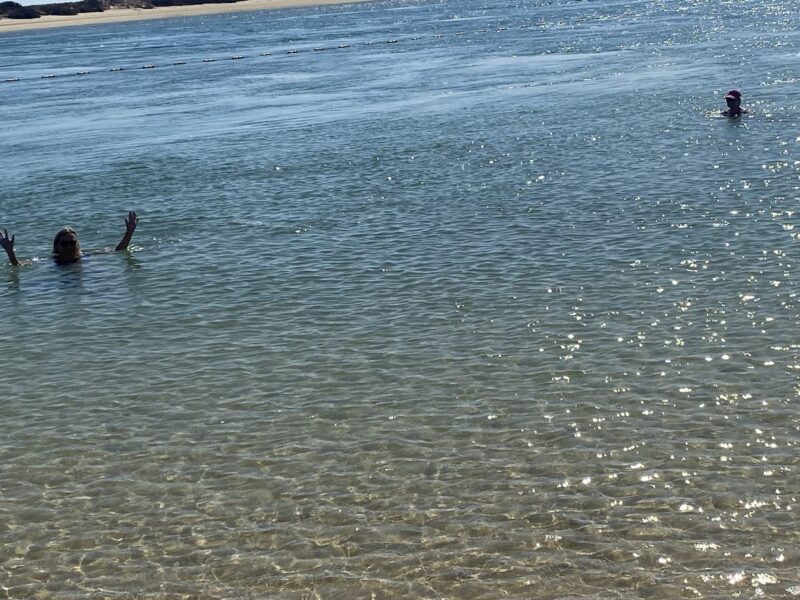 Nu var det tid til et havbad! Jeg synes først, det var lidt køligt, men det var skønt, straks jeg kom under. Der var en kæde som man ikke måtte passere, dels pga. båden, men nok også strømmen, der var stærk.