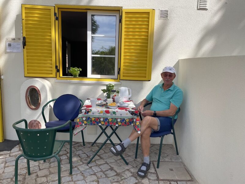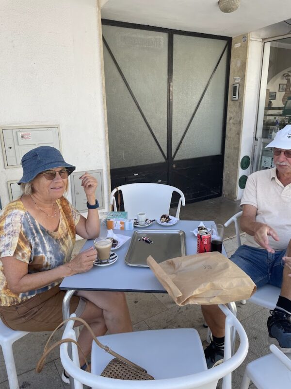 Vi havde en mærkelig oplevelse på lille cafe. Vi gik ind for at bestille ved baren. Der sad en skægget, lidt ældre mand med en kop te ved et af bordene, vi troede han var en gæst. Ingen ved baren. Han sagde “Bom dia” til mig, jeg svarede på samme måde og gik ud og satte mig, så kunne Henning bestille, aftalte vi. Henning kom lidt efter ud og sagde, vi bare skulle vente på betjening udenfor. Så kom “manden med teen”, der åbenbart var ansat, ud og da jeg bad om en cola, sagde han at det kunne jeg ikke få. Faktisk kunne vi ikke få noget som helst, for han ville have, vi skulle gå! Det var lidt specielt, men det måtte vi så gøre. Det viste sig, han havde sagt til Henning, at nu havde han tre gange bedt ham om at gå ud og sætte os og vente på betjening. Det havde Henning ikke forstået og det var heller ikke specielt venligt sagt af herren, så Henning gav lidt igen: “jeg tror nu det er 4 gange”. Det var herren så blevet meget vred over, men vi ville jo bare spare manden for at skulle gå ud til os og troede, der var bestilling ved baren. Det er hvad, der kan ske, men faktisk lidt ubehageligt at blive smidt ud…