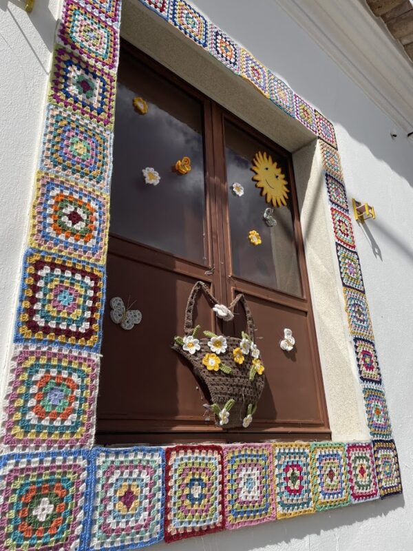 I landsbyen Alportel var der pyntet op med hæklede og strikkede ting utallige steder – på husmure, omkring vinduer osv. Vi fandt aldrig ud af, hvad der gik for sig, for sådan ser der normalt ikke ud…