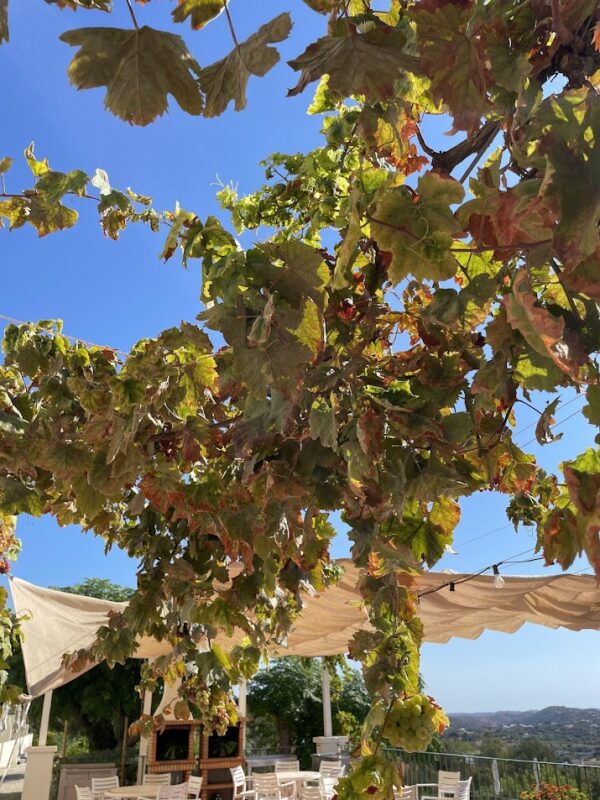 Kunne f.eks. være sjovt at være med til vinhøst på Coracao på et tidspunkt. Det er dog ikke vinen her ved fællesterrassen, der leverer druer til flaskerne