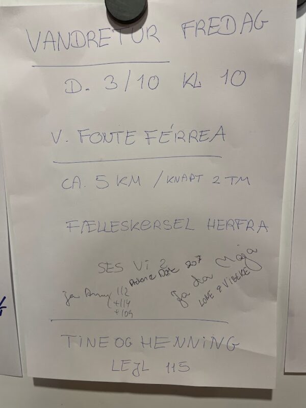 Andre kom forbi og spurgte om vi ville med til vandretur ved Playa Faro i morgen, det passede bedre. Men vi måtte også takke nej til nogle, som skrev om vi ville med til stranden denne dag. Der var virkeligt gang i det sociale hernede!