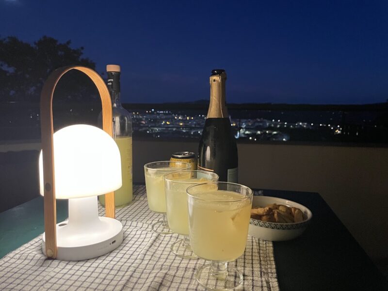 Hjemme fik vi en skøn, lun sommeraften, hvor vi spiste udenfor hos venner, der også havde inviteret et andet hold. Fantastisk at sidde og kigge ned på byens lys, for deres lejlighed lå i sydfløjen.