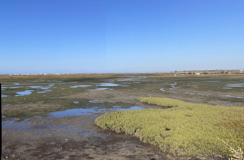 Vi var 9, der drog til ned til Praia de Faro . Parkede ved p pladsen efter broen og gik tilbage over broen. Trods de mange, mange fly, der fløj lavt hen over området, var der et vældigt fugleliv.