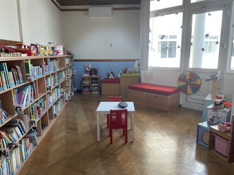De 2 bibliotekarer skulle også besøge det lokale bibliotek. Børnebibliotekaren smilede og snakkede lidt engelsk. Som ved sidste besøg klagede de over for lidt plads, og hylderne bugnede da også.