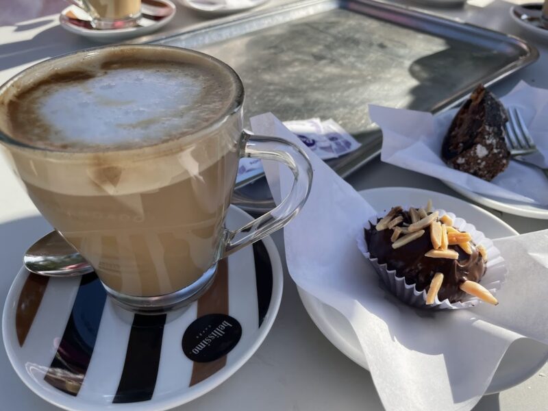 Vi satte os på torvet og det var en god ide. Det viste sig at cafeen her er rigtig fin og bl.a. har de små små fine kager som hos Fatima og til kun 1,5 euro.