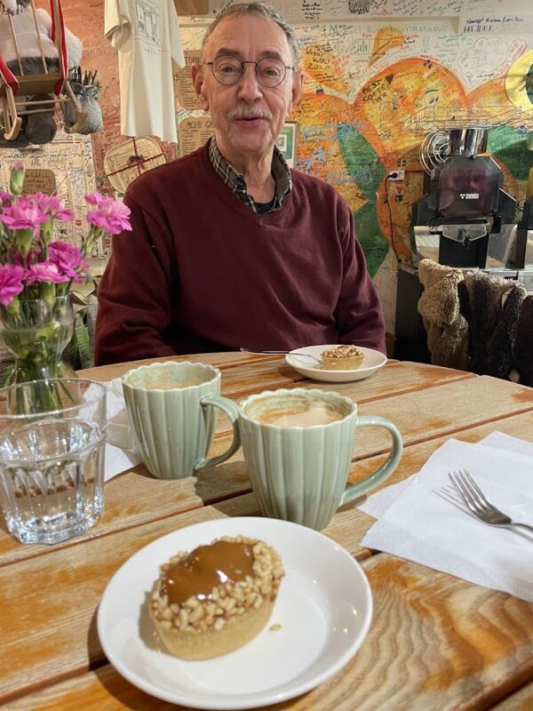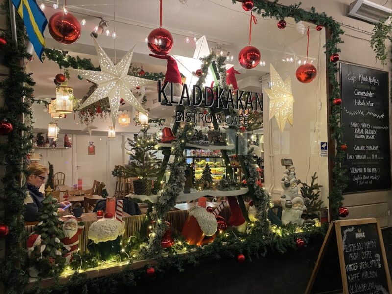 Så var det kaffetid. Vi satte os på en café, lige da vi kom tilbage til Gamla Stan, cafe Schweizer. Den var dekoreret med en masse navne, nærmest som graffiti på væggene. Indretningen var meget lig Penny Lane i Aalborg.