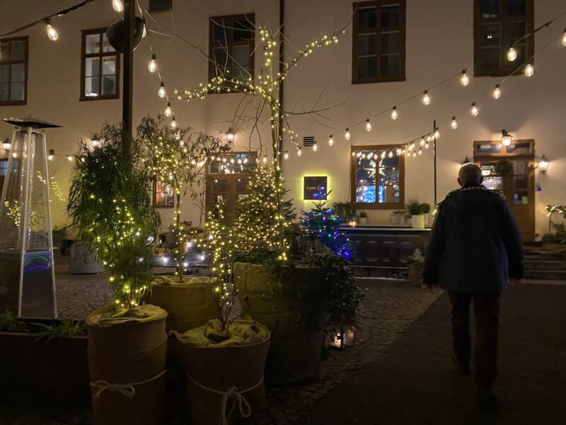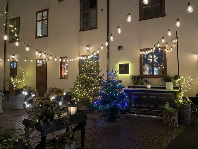 Hotellet havde en meget hyggelig gård, der nu var oplyst af julelys, men som også er en dejlig gårdhave om sommeren.