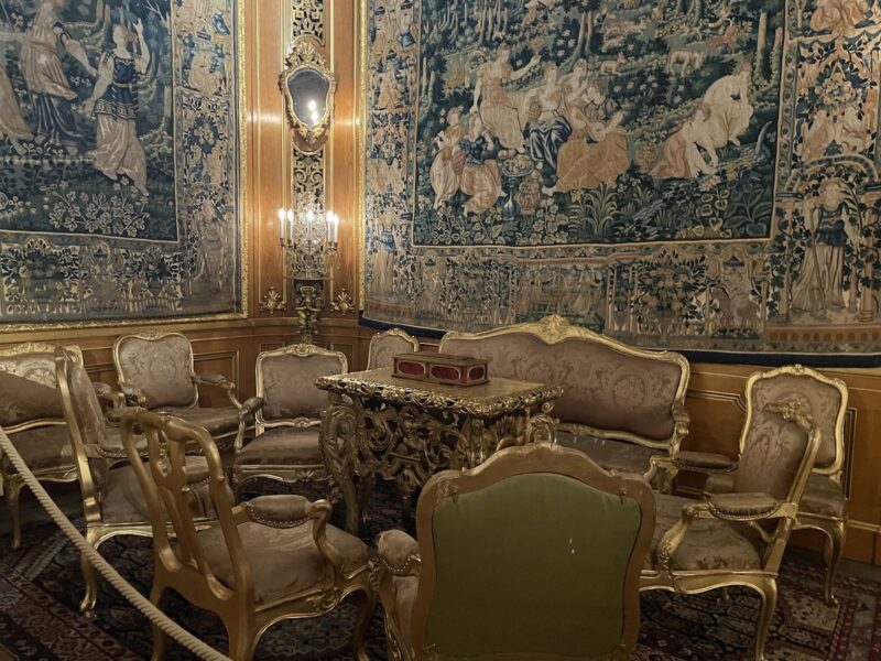 Inden rundvisningen kl. 13 så vi repræsentationslokalerne. En super god rundviser, Per – en lille, tynd, ikke helt ung herre, der viste sig også at være lakaj, så han kendte meget til slottet.