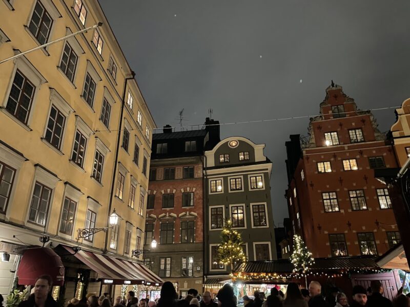 Vi gik ind til Gamla stan og kom lige i rette tid til rundvisning på engelsk på Nobelprismuseet, hvor der var julemarked udenfor (hvilket vi så på en anden dag).