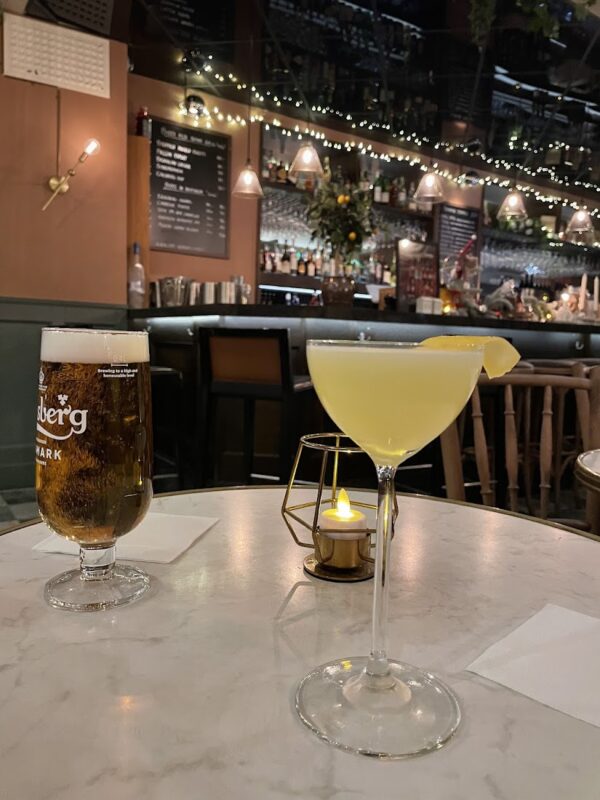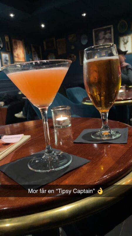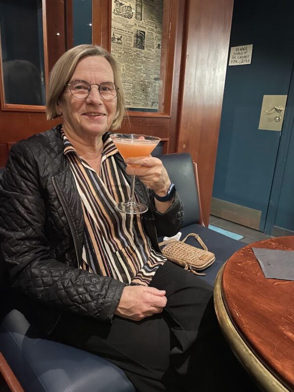 Forinden fik vi drinks i en fin bar ved Katarinahissen, Bar Lilla Compagniet. Mor her kastede sig ud i en cocktail, det var et hit!