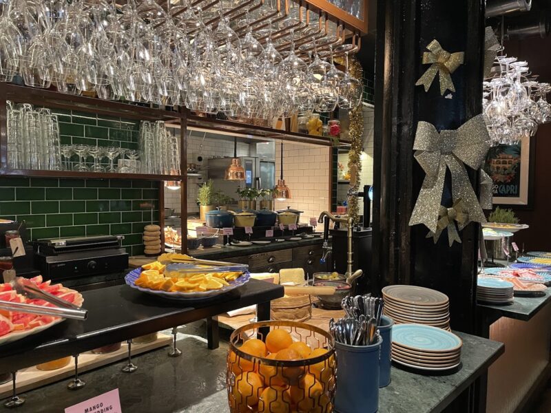 Der var virkelig pres på i hotellets winebar, der også fungerer som morgenmadssted. Men det skulle vise sig kun at være fordi det var søndag. De andre dage var der langt færre, og vist alle var der i arbejdsøjemed. Meget fin morgenmad bl.a. med sprød bacon og fantastisk lækkert hjemmelavet knækbrød osv.