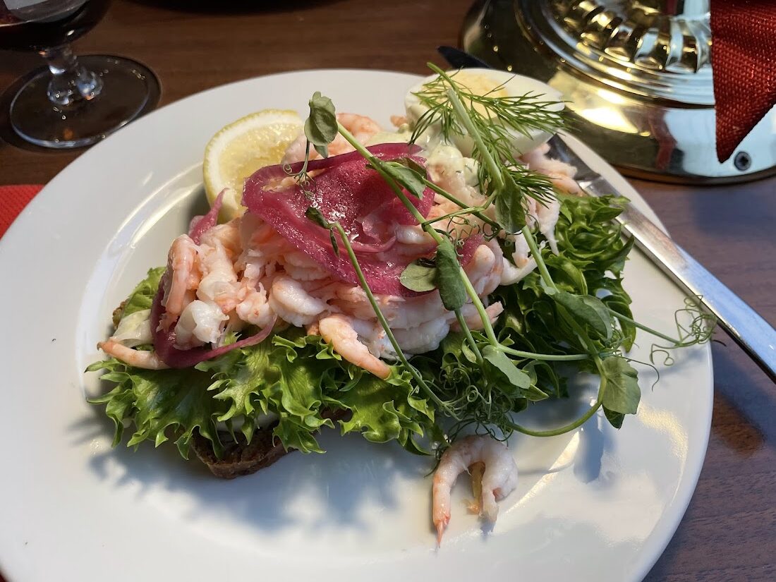 Også på hjemturen havde jeg bestilt plads i Spisevognen. Vi sluttede gensynet med Sverige med en räksmörgås, en klassisk svensk rejemad. Betjeningen forstod ikke et ord, da Henning bestille “to rejemadder” 😉